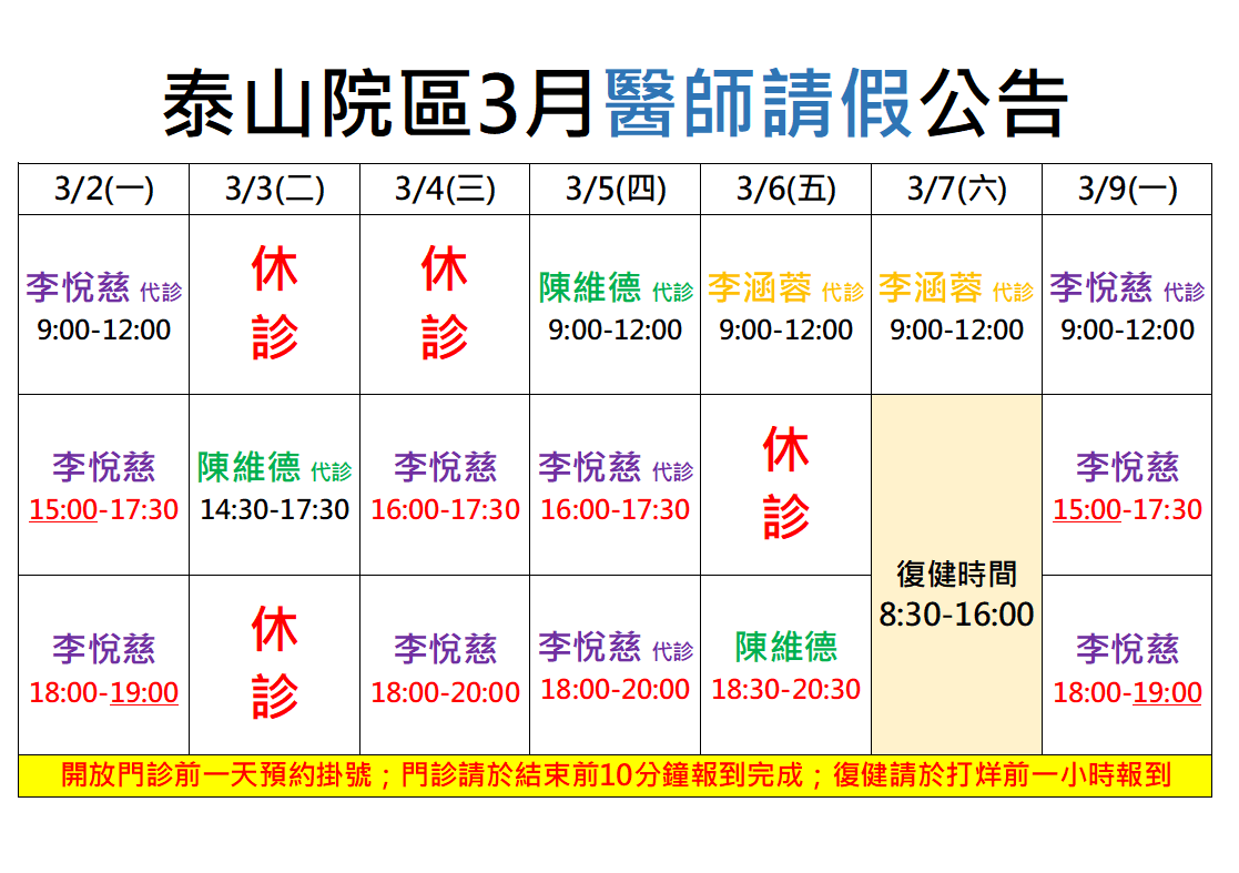 !若病人太多則提早停掛!