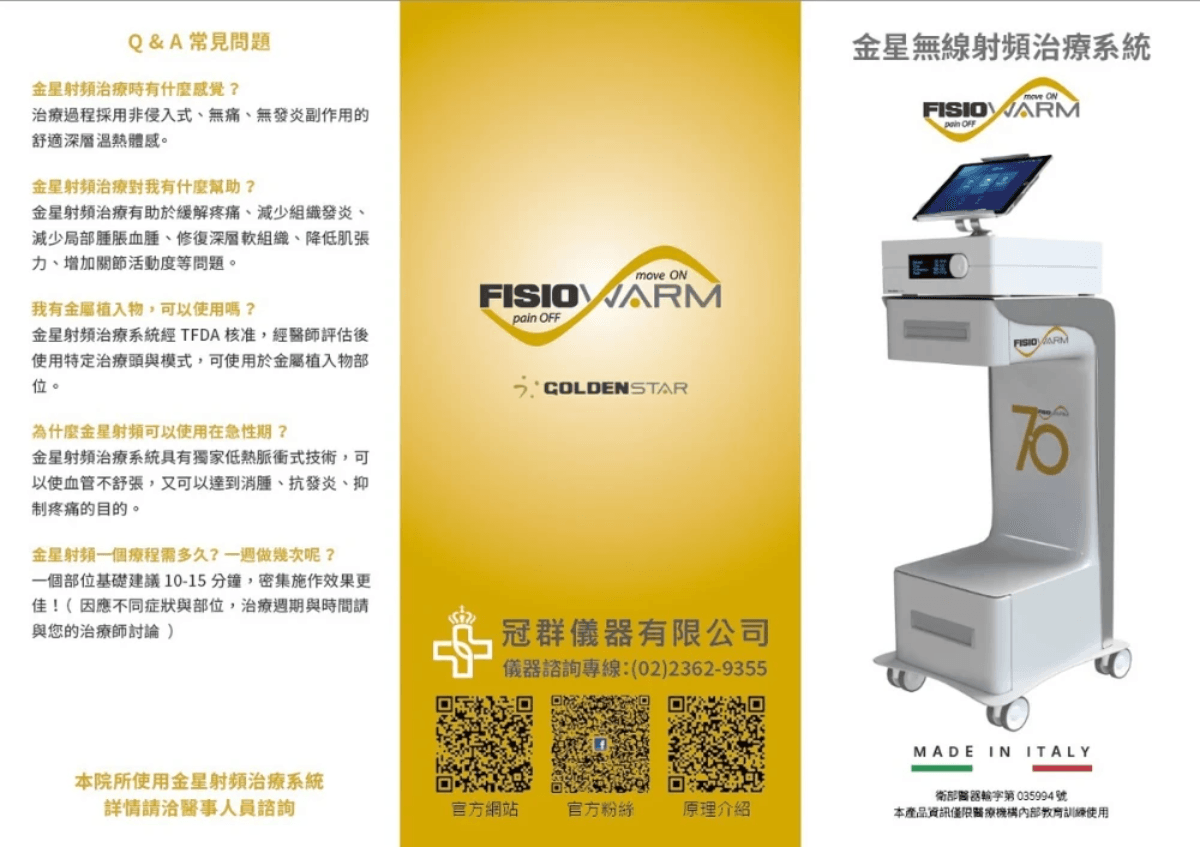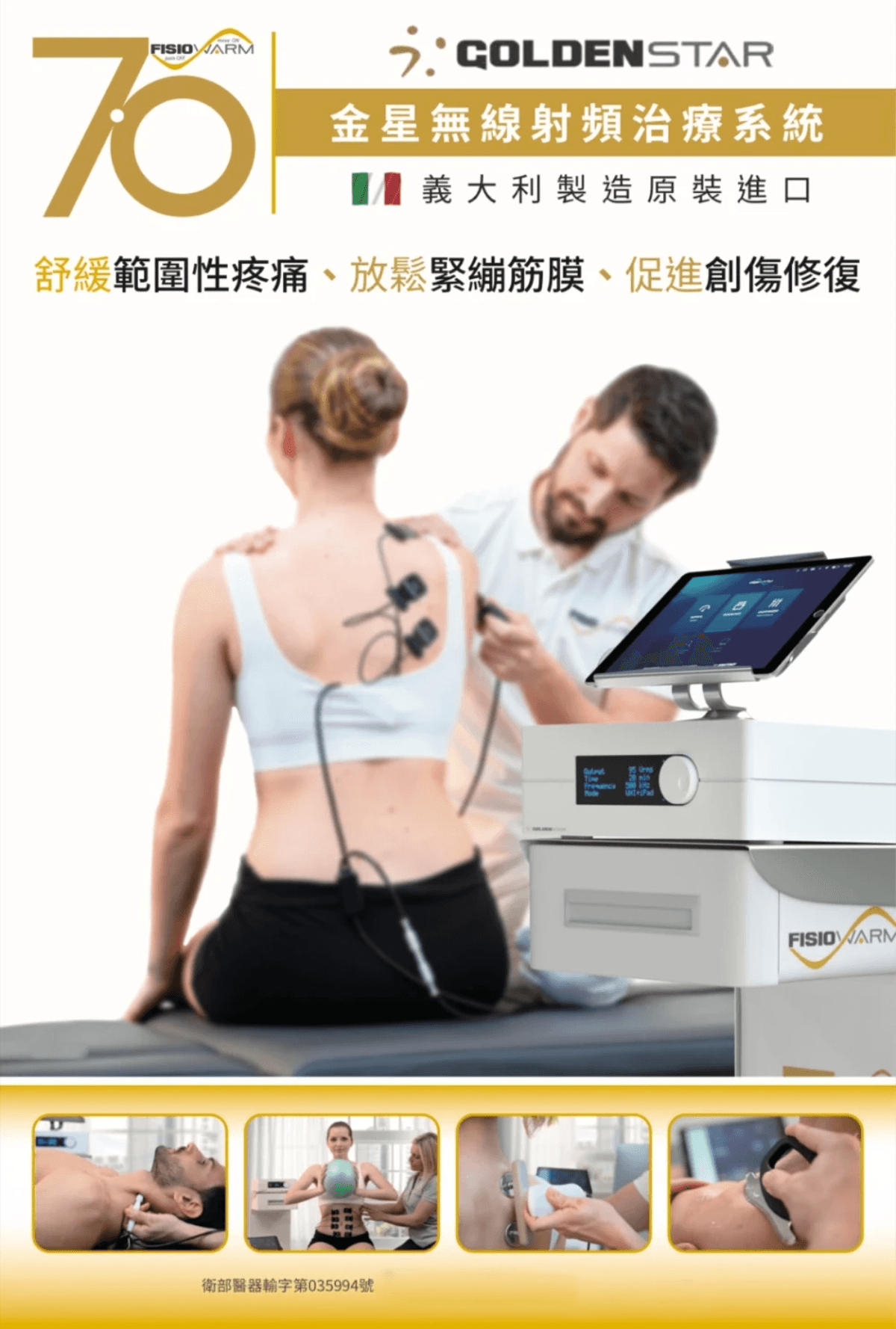 TECAR 射頻治療是近年來醫療復健領域的先進技術,屬於非侵入式、無痛且無創傷的治療方式。治療過程中會產生溫熱感,能有效促進身體修復與循環調節。